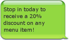 Text message marketing is a simple and inexpensive way for restaurants to increase customer loyalty and revenue. Reward your customers with discounts on menu items and let them know about specials you are running.